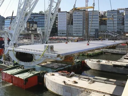 2205双相不锈钢复合板闸门在车间制造,通过驳船运输至目的地 ©Skanska