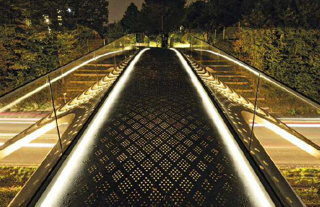 夜晚,LED灯照亮了人行桥两侧和桥下©sbp/Andreas Schnubel