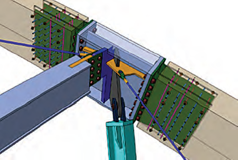 • 第二部分结构的悬挂框架使用了2000吨碳钢