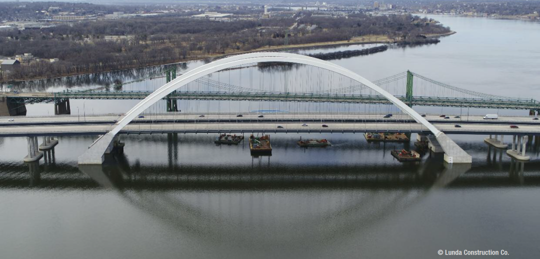 I-74大桥,官方名称为爱荷华-伊利诺伊纪念大桥,位于寒冷多雪的美国中西部,芝加哥以东约一小时车程的密西西比河上。它通常被称为“双子桥”,因为I-74公路横跨一对拱桥,一座通往爱荷华州,一座通往伊利诺伊州。对于依靠桥梁交通的人来说,桥梁或者预示着安全感,或者意味着被忽视。幸运的是,最近的桥梁更换采用了一些最好的材料,这些材料经过精心挑选,只需最少的维护寿命即可长达百年。