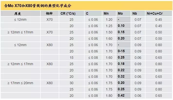 表2 含Mo X70和X80管线钢的典型化学成分
