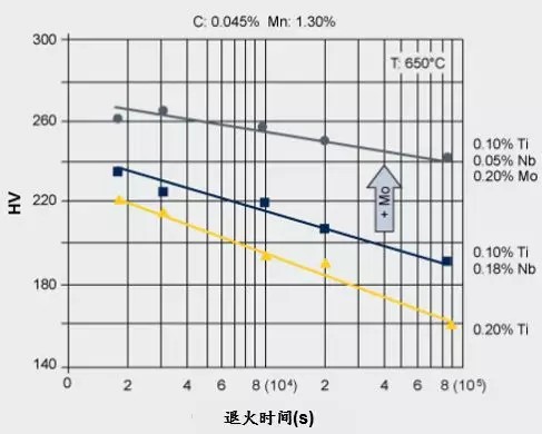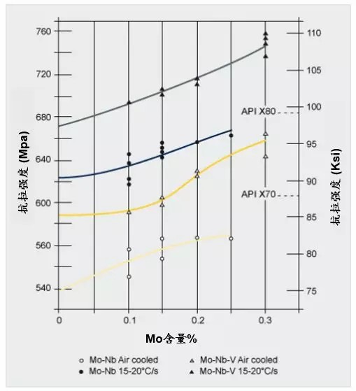 Mo在热机械轧制期间延迟了微合金化元素的析出;